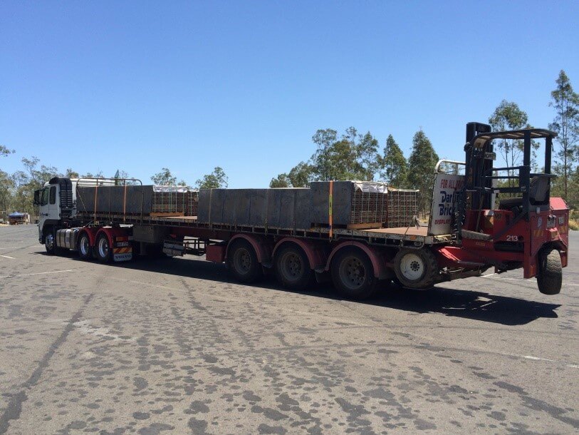 Products can be packed onto pallets and loaded onto a Flatbed Truck with a forklift on board to run pallets around site at the require delivery address. This method of transport is commonly used for factory made products. Palletising Blocks can also be done. This can reduce chipping and breakages however comes at an extra cost.